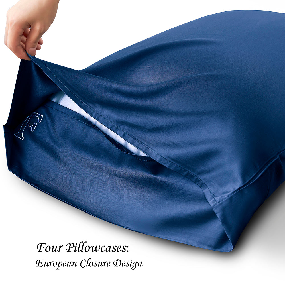 Luxurious, Cloud-Like Sheets With Embroidered Letters On Bottom Corners To Identify SIZE & DIRECTION. So Soft, Hypoallergenic, Eco-Friendly (F=Full/Navy Blue)